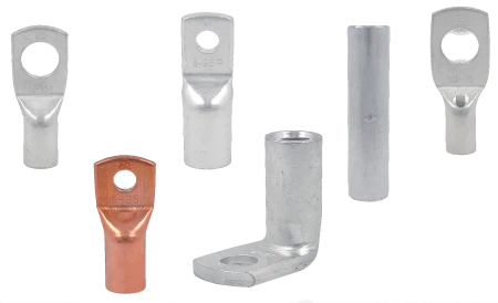 Полный ассортимент медных трубчатых наконечников: кольцевые (KM, KOR), с контрольным отверстием (KORo), изолированные (KORI, KORol), суженные (KORW), для двух болтов, вилочные (KWR), угловые (K90R, K45R), соединители ("батт сплайс" KL, ZM)