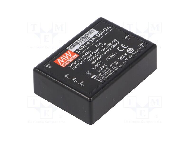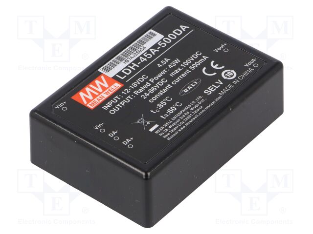 LDH-45A-500DA, Преобразователь: DC/DC; 43Вт; Uвх: 9÷18ВDC; Uвых: 24÷86ВDC; THT